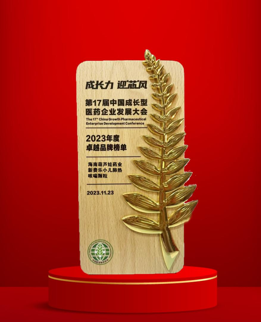 大会期间,一年一度的“金叶奖•2023年度医药行业风云人物奖”榜单重磅揭晓,鼎博药业集团党委书记、董事长刘景萍荣耀上榜。金叶奖是为了表彰广大医药企业家或企业为行业茁壮发展做出的卓越贡献而设立的奖项,“金”象征着品质、品牌、影响力,“叶”象征着生命、健康、成长力。金与叶结合,有“敬业、兢业、竞业”之意。此外,集团黄金单品新费乐®小儿肺热咳喘颗粒凭借卓越的产品质量和品牌影响力赢得了行业、市场和消费者的肯定,获得了“2023年度卓越品牌奖”。